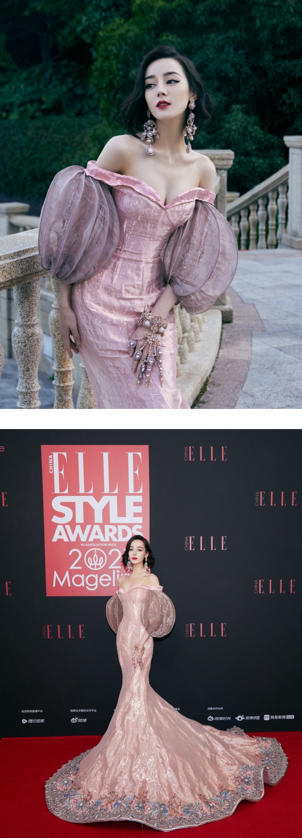 身穿粉红色礼服的迪丽热巴非常高贵、性感,尤其礼服的低胸和贴身设计更是让她的好身材尽显。
