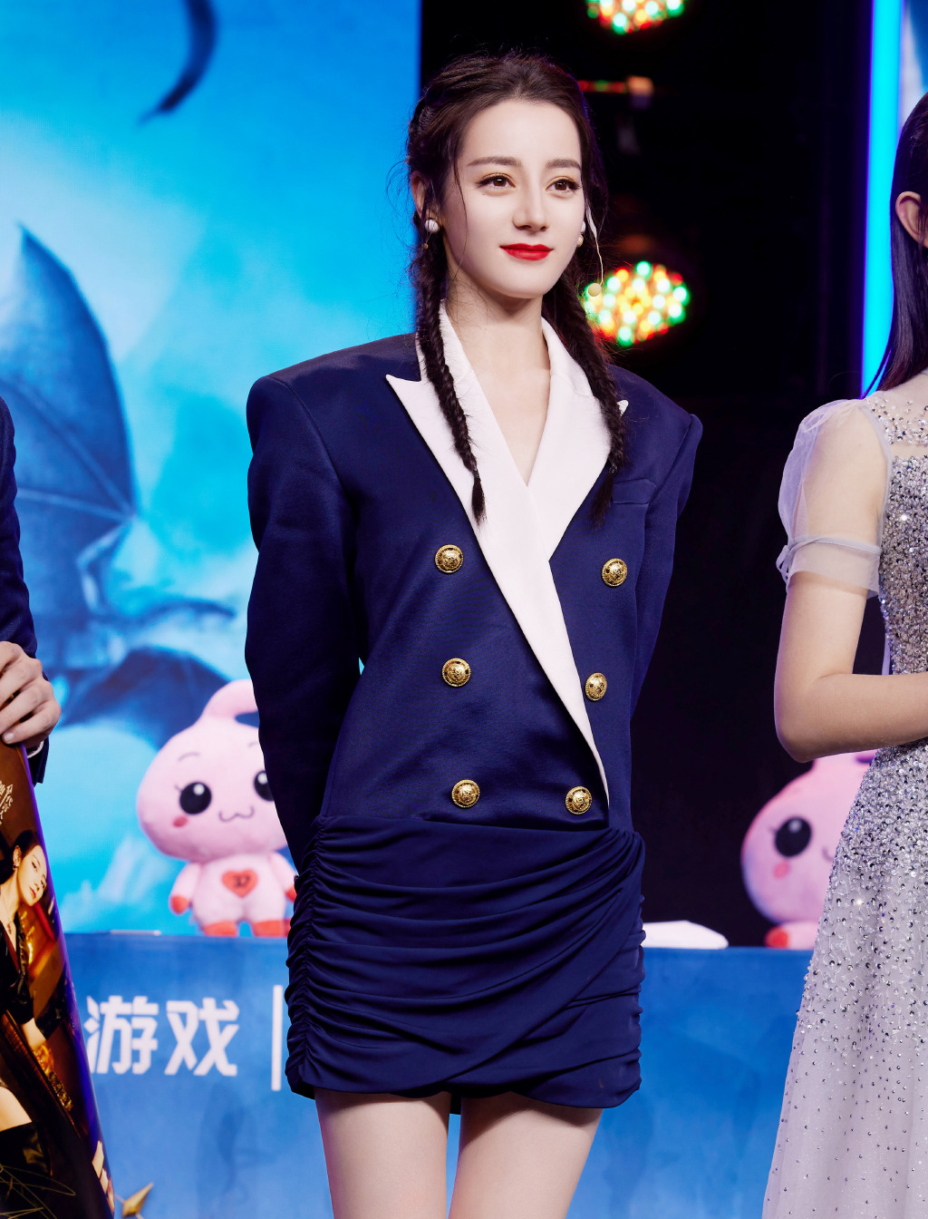 迪丽热巴昨天(13日)出席活动直播,只见穿着学院风短裙的她以双马尾造型现身,看起来非常青春洋溢。