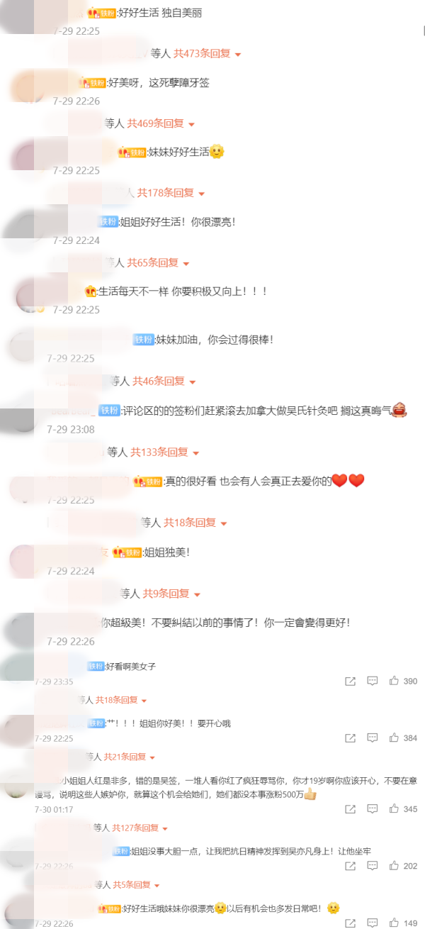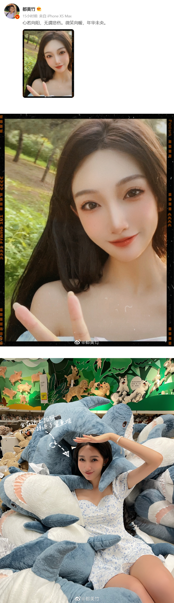 曝光的照片看到,都美竹顶着精致妆容,对着镜头微笑比Yeah配文,“心若向阳,无谓悲伤。微笑向暖,年华未央。 ”网友看了都美竹的更博后留言,“好好生活 独自美丽”、“生活每天不一样 你要积极又向上”、“你超级美!不要纠结以前的事情了!”、“以后有机会也多发日常吧”等。
