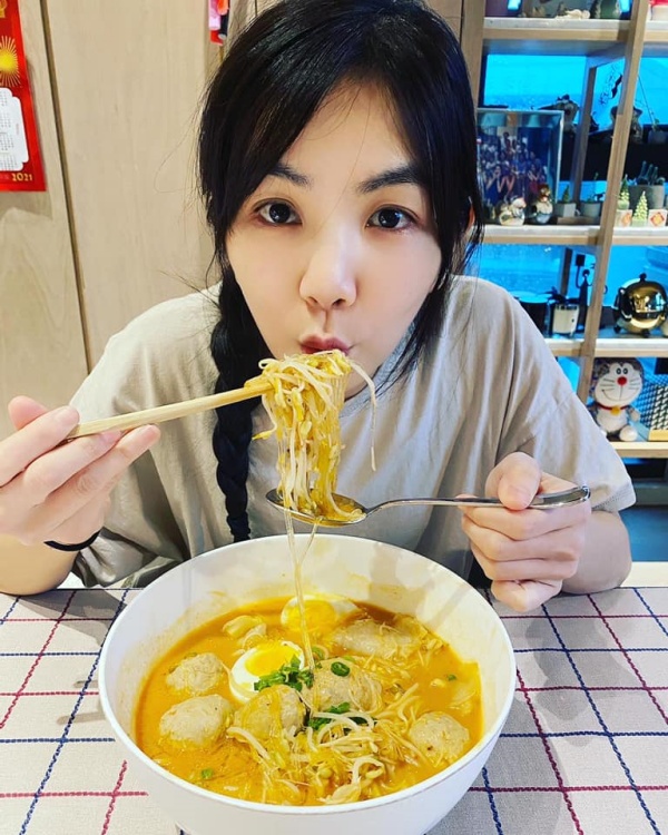 Ella夹起一大口豆芽、面条等,放到嘴边:“今晚很想念马来西亚的咖喱叻沙”。网民见状,也在留言区晒出大马咖喱叻沙的照片,还教她最美味的煮法:“除了血蛤,还有米粉配面”、“请问这个面条是用米粉吗”、“有血蛤吗”、“这丸子很多喔!吃面还是要配丸子才好吃”。