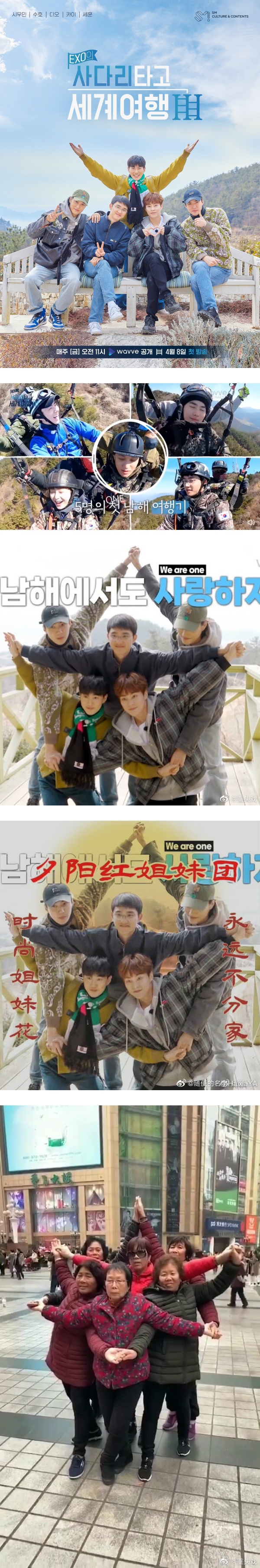 韩团EXO即将在本月8日迎来出道10周年的日子,众人早前参与的团综《EXO的爬梯子世界旅行》预告在今天曝光,粉丝发现EXO在拍团体照时所摆的pose,竟然和中国大妈撞款。