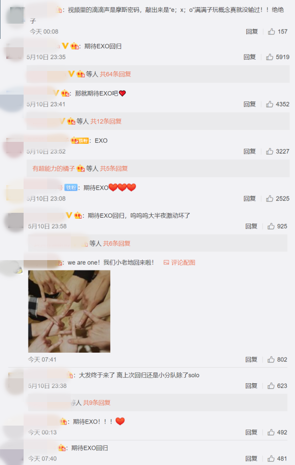 EXO即将发布新作的消息曝光后,网友直呼,“ 期待EXO回归,呜呜呜大半夜激动坏了”、“ we are one!我们小老地回来啦!”、“满满子玩概念真就没输过”等。