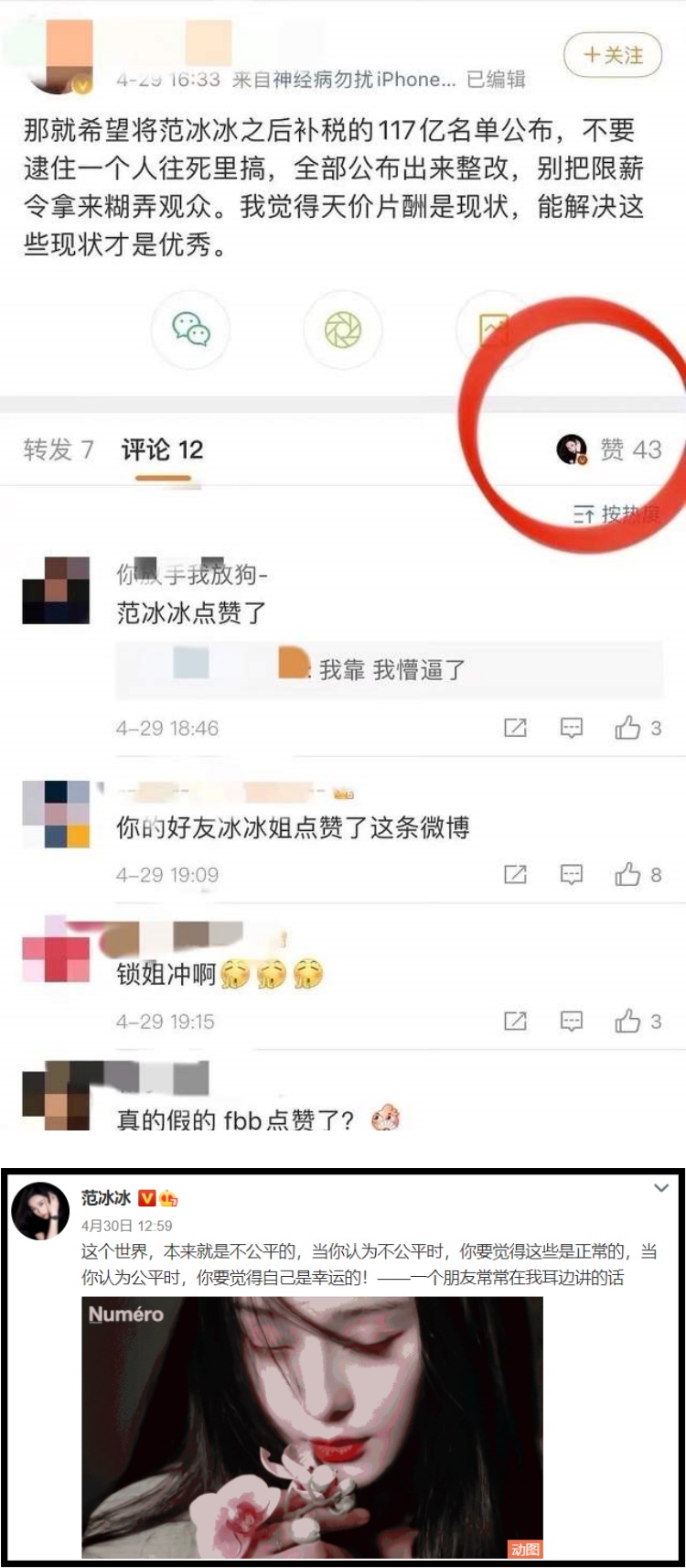 郑爽近日因被曝阴阳合同、偷漏税而被税务局展开调查,2018年也曾面对同样遭遇的范冰冰似乎因此受到刺激,继点赞“希望公开补税艺人名单”的微博后,再发文感慨世界不公平。
