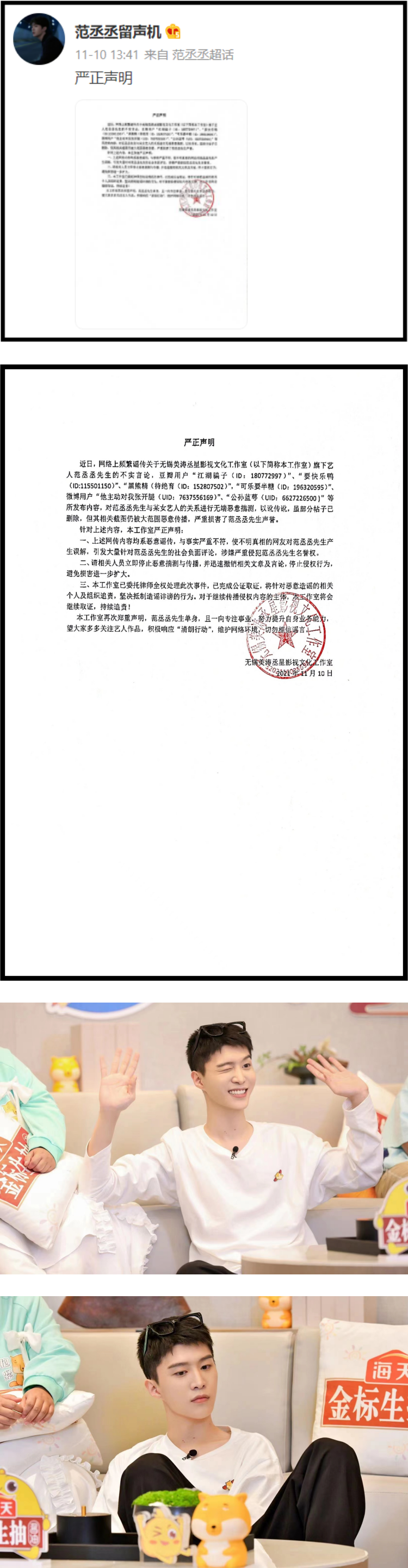 不仅如此,工作室更列出造谣者的ID,“已完成公证取证,将针对恶意造谣的相关个人及组织追责,坚决抵制造谣诽谤的行为”,怒将造谣者告上法庭,让不少粉丝感动大呼:“好!干得好!早该告了!”