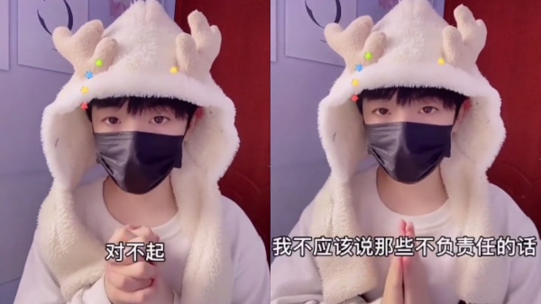 风小逸近期上传长达20秒的道歉影片,双手合掌表示:“我要为我之前的行为给大家说一声对不起,是我的错;我真的知道错了”,并配上90度鞠躬的表情包。他也修改了简介:“我怕你们了,我压力好大。”