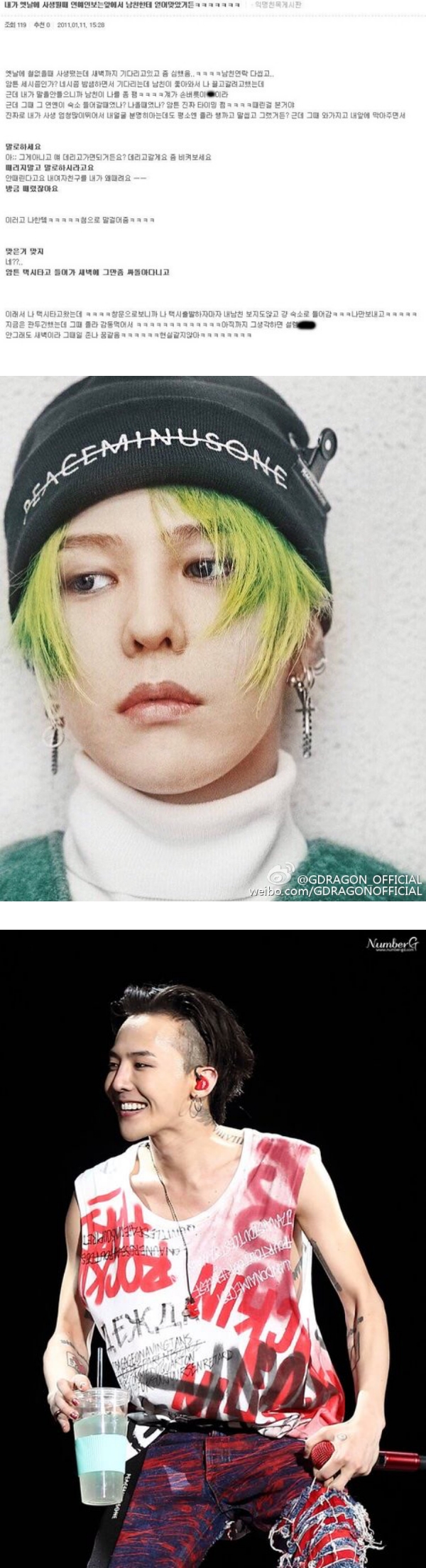 近日有韩国网友在论坛上曝光了2011年时偶遇G-Dragon 的暖心故事,引起了网友们的热议。据悉,该名网友表示自己当年曾经当过私生饭,有一次蹲守GD到凌晨,并没有回复男友的信息。