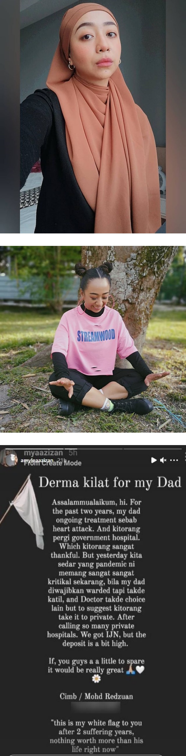 35岁大马歌手Amylea Azizan日前在社交媒体上举白旗,希望为患有心脏病的父亲筹募私人医院费用,她称,“我们别无选择,如果不带我爸去私人医院,我们会痛失了爸爸”。