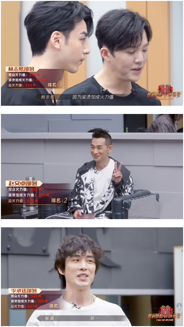 经过现场1000位观众和滚烫力量团的投票,李承铉组以843分得第一名,赵文卓组以605分得第二名,林志炫组则以558分得第三名,张晋组以459分在第五位,陈辉组以421分排名第六。