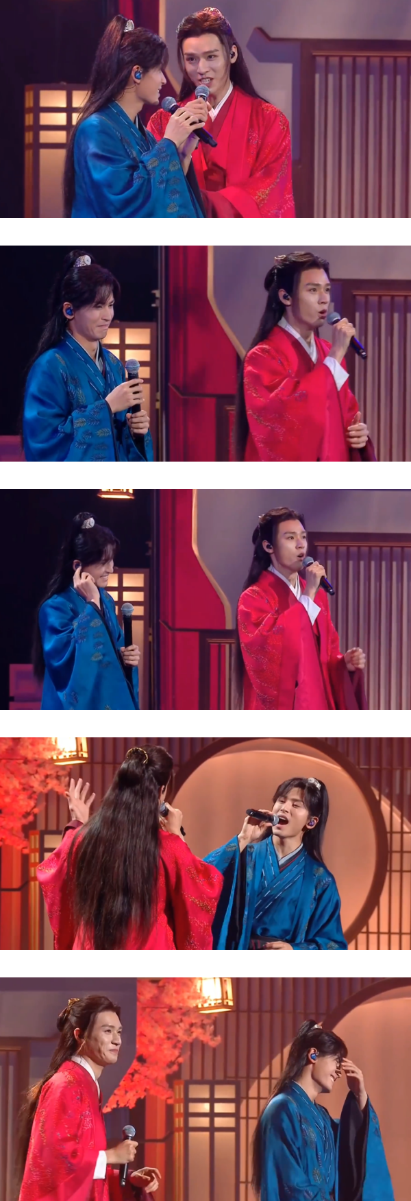 《山河令》两位主演龚俊和张哲瀚一起出席活动,并合唱剧集主题曲《天问》。途中张哲瀚的耳返疑出问题,因此没跟上拍子,这时身旁的龚俊热心帮他找调。
