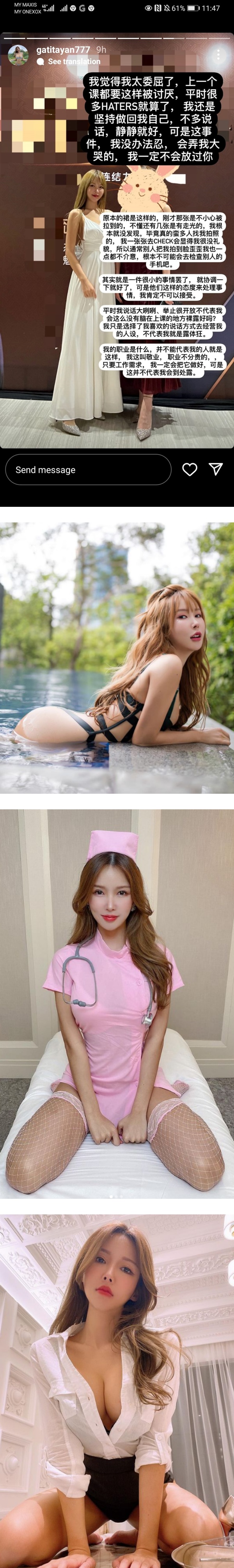 他透露院方并没有找自己和林尚进以及拍照的男生了解情况,而是直接信息Gatita要求她隔天不用去上课了:“这件事情明显是有人有偏见针对性的做出错误判断。并且没有了解的情况下,我觉得处理方式已经在藐视女性并且严重伤到gatita。”网友为此感到抱歉,并亲自信息Gatita道歉:“她也非常理智的说没有怪我了。也明白我也只是帮忙拍照邀请拍照罢了。”