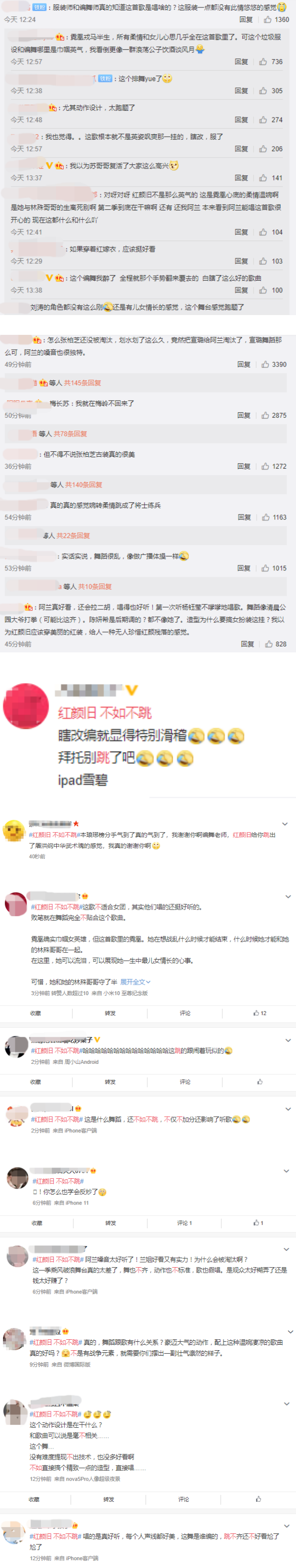 节目播出后,“红颜旧不如不跳”被骂上热搜,不少观众认为姐姐们没带出《红颜旧》的意境,且舞蹈非常不整齐,纷纷留言怒骂: