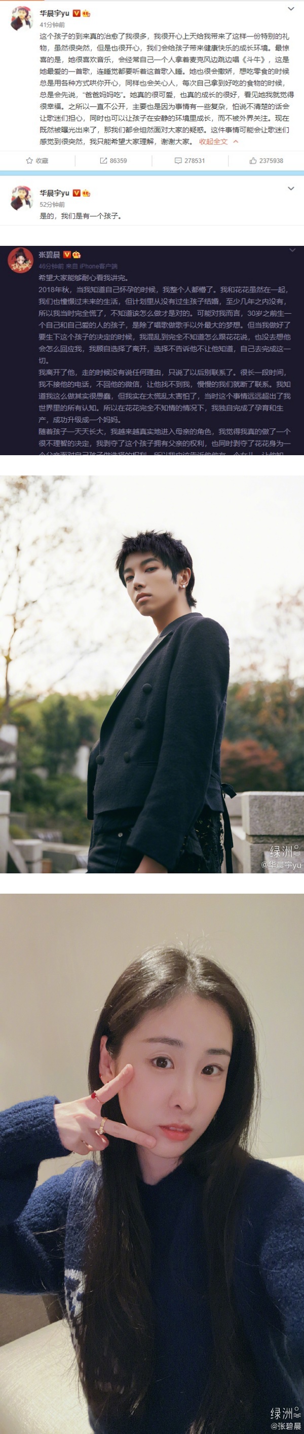 官宣! 华晨宇、张碧晨认了:我们是有一个孩子