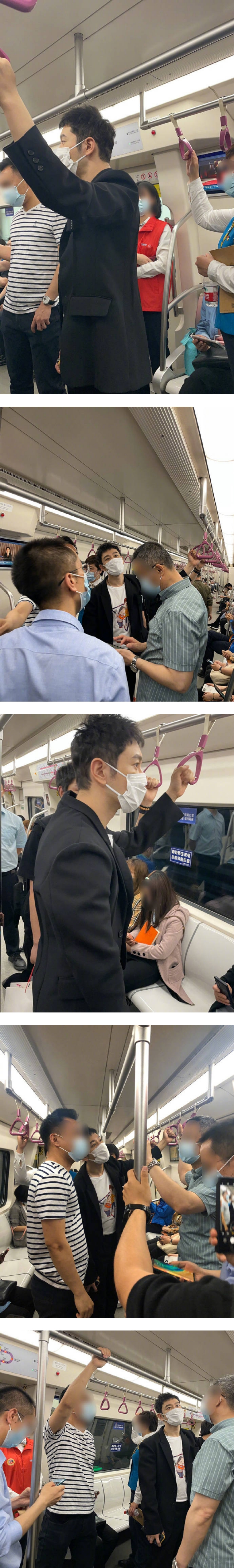 黄晓明昨天现身天津参加公益活动,在地铁站大派爱心口罩。活动结束后,他直接搭乘地铁前往高铁站。只见他穿着一身黑色休闲西装,虽然戴着口罩,但在人群中依然非常瞩目。