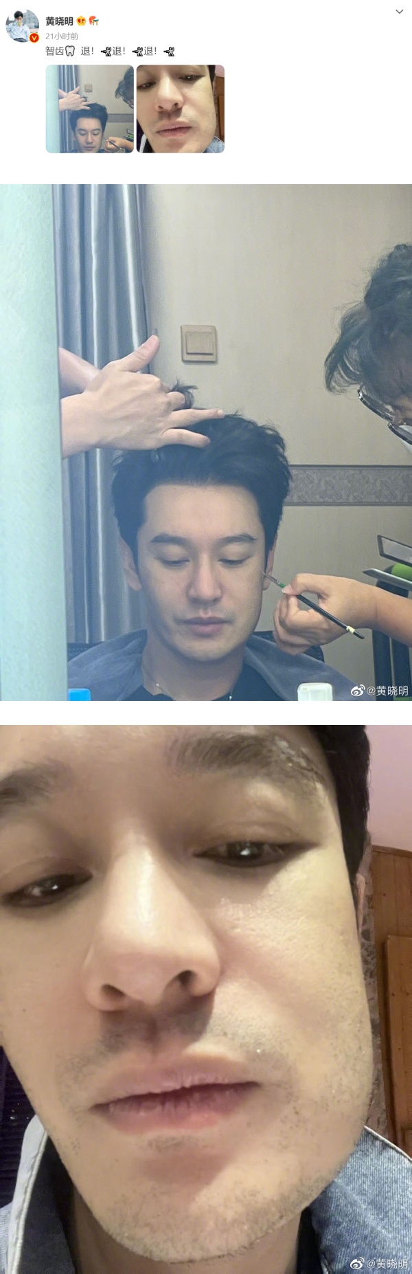 8日午间,黄晓明在微博上贴出2张自拍近照,图中看到他脸颊上肿了一大块,黄晓明无奈写下,“智齿 退!退!退!”;早前黄晓明被拍到做PCR时,疑似因为牙痛不断摸脸颊,近日他终于下定决心拔掉智齿,但没想到却肿了一大包。