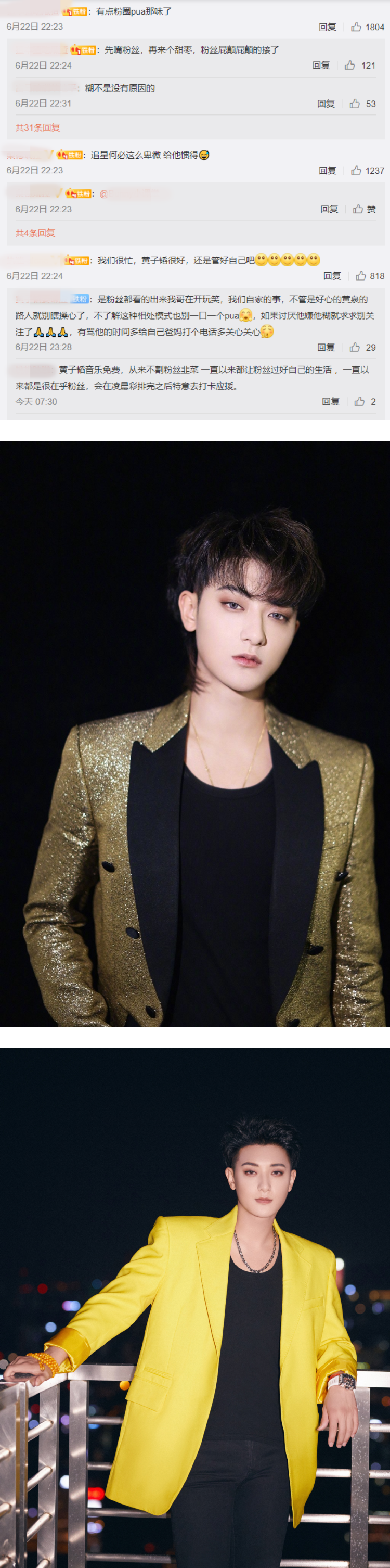 黄子韬与粉丝之间的互动再次引起热议,不少网友都傻眼吐槽:“有点粉圈pua那味了”、“追星何必这么卑微,给他惯得”、“请站起来追星”、“动不动就失望,他怎么这么多望要失”。