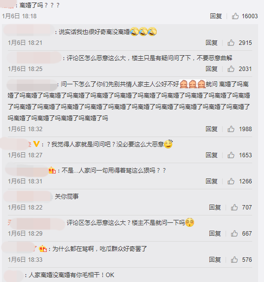 黄晓明发文一出,短短三小时就破4万留言,目前更累计了6万的留言,评论区更是分成了不同的阵营,有“吃瓜网友”调侃:“现在球传到了李菲儿脚下”、“霸道总裁放话了:有什么都冲我来”,而掀起最大讨论的就是热评之一:“离婚了吗???”