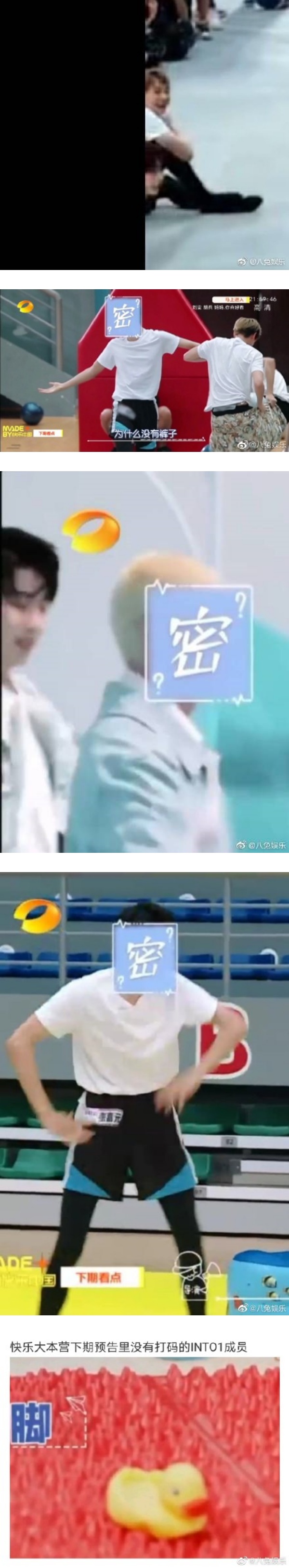 不过节目组竟然放出他们跳同名成团曲《INTO1》的画面,完全公开告诉观众们躲在“密”背后的人是谁了!粉丝也凭服装以及零碎画面中认出成员们,其中张嘉元的脸虽然被遮住了,但裤子上的名牌却暴露了身份!米卡的标志性“猕猴桃”发型也出卖了他。