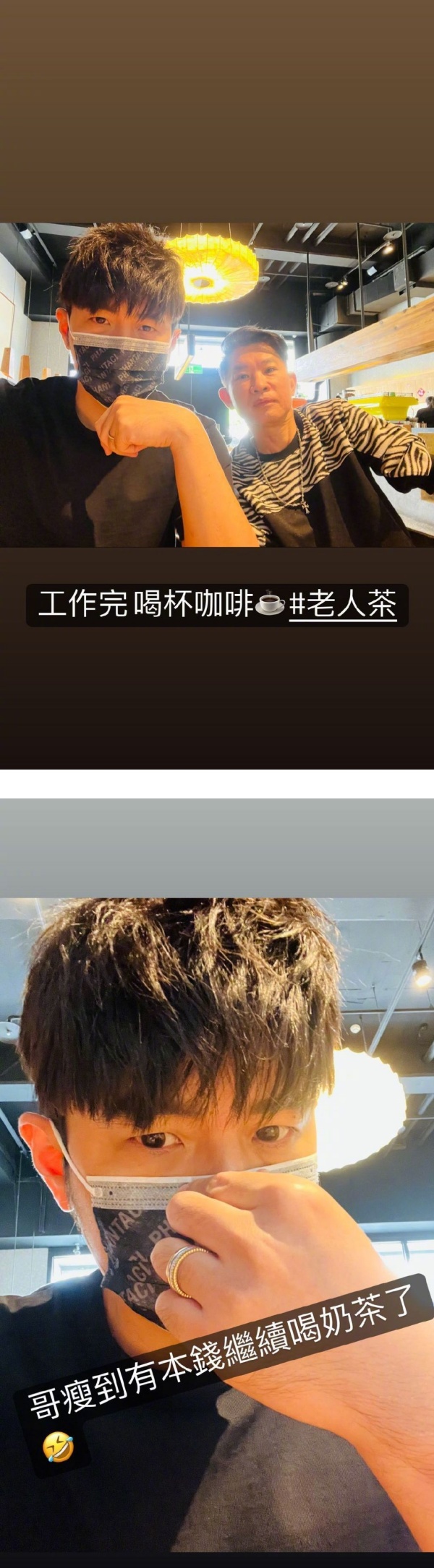 天王周杰伦在IG Story分享工作完享受咖啡的照片,并透露自己瘦了!
