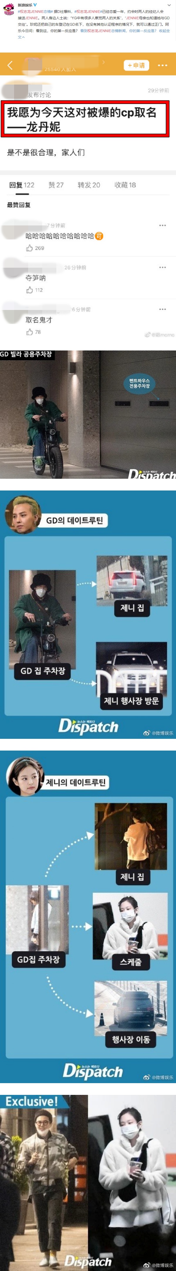 在GD和Jennie恋情被曝不久后,有网友发挥创意,为这对CP取名为“龙丹妮”;消息传开后,网友笑说,“哈哈哈 终究是妮的天下”、“ 起名鬼才”、“龙丹妮表示蹭到了”等。