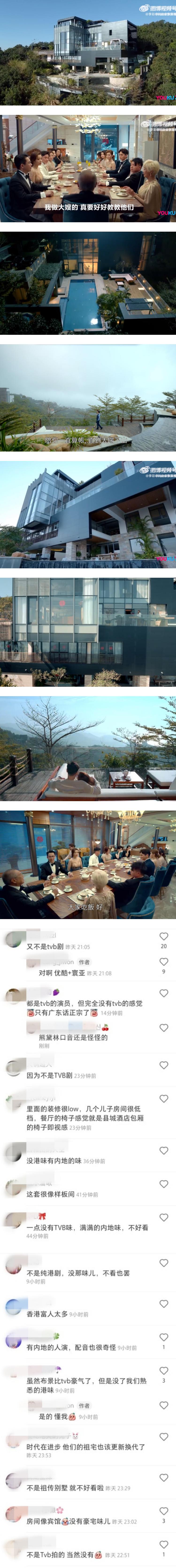 虽然剧中的豪宅升级了,但变化了的场景仍让不少TVB迷纷纷感慨:“少了TVB那个味”、“除了演员是香港的以为 其实不算港剧”、“都是TVB的演员,但完全没有tvb的感觉”、“没港味,有内地的味”、“一点没有TVB味,满满的内地味,不好看”、“突然这么豪华,我有点不习惯”、“虽然布景比TVB豪气了,但是没了我们熟悉的港味”。