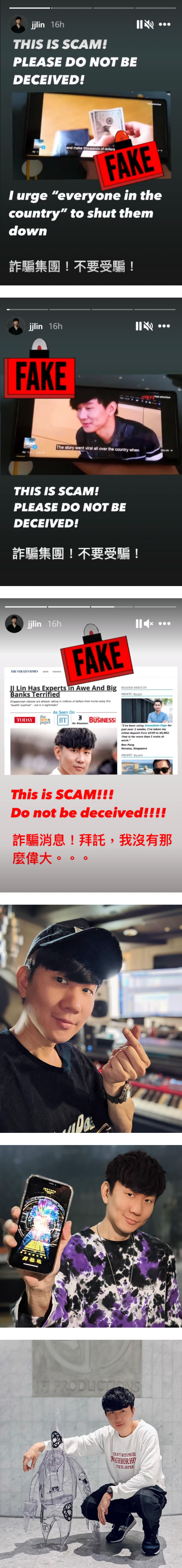 林俊杰也在IG上接连发了3则Story写下,“诈骗集团!不要受骗!”、“This is SCAM”、“诈骗消息!拜托我没有那么伟大。。。”在线打假。