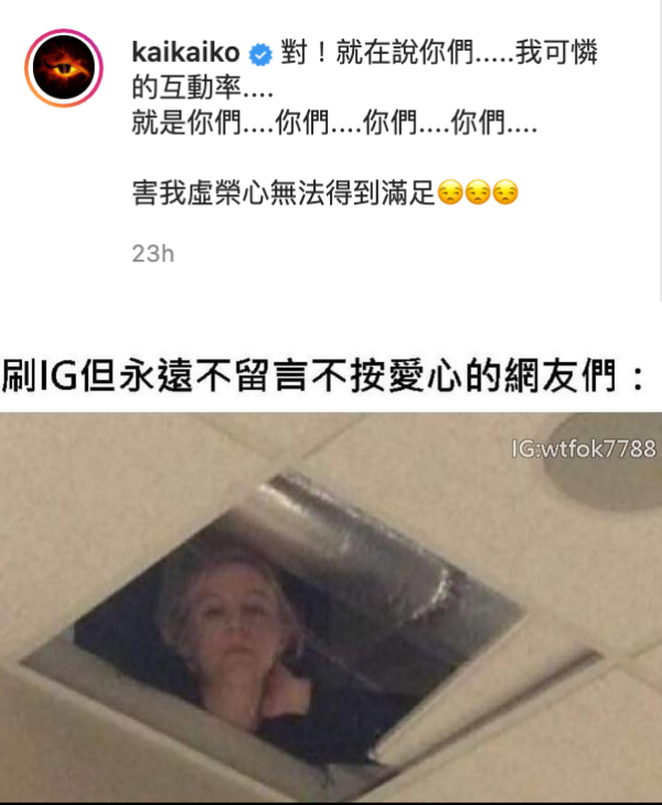 但近年来不论是演出电影《打喷嚏》,或者设立视频平台与粉丝积极互动,柯震东的人气依然回不去当年顶级流量明星的盛况。他近日在社交平台上自嘲粉丝们不按赞不留言,导致贴文互动率低,心情显得有点失落。