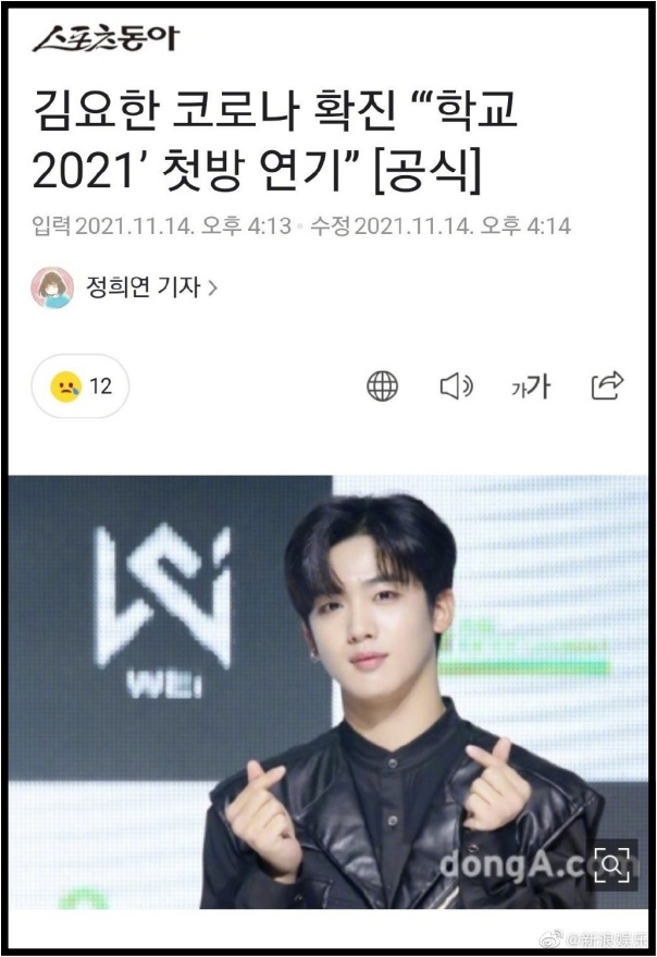 据韩媒报道,韩国艺人金曜汉确诊新冠肺炎!他所主演的《学校2021》也因此推迟首播日期。