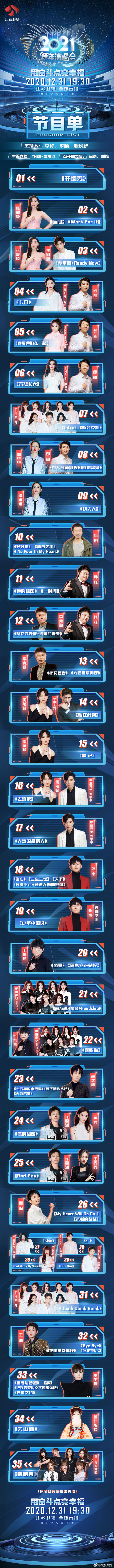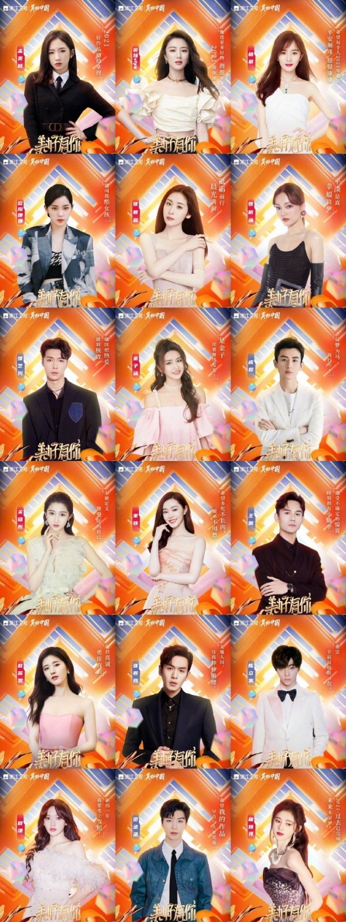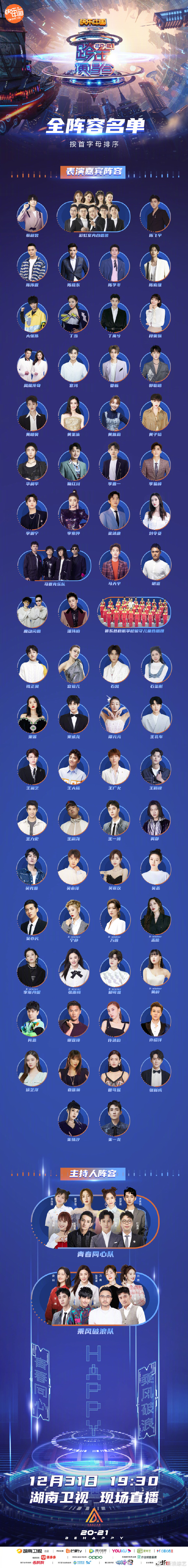 谭松韵、周深、王源、李宇春、吴亦凡、杨幂、关晓彤、欧阳娜娜、黄景瑜、周深、毛不易、阿云嘎、硬糖少女303 、大张伟、凤凰传奇、王耀庆、秦海璐、胡杏儿、周笔畅、钟镇涛、郁可唯、赵露思、金晨、张云龙、高伟光、沈月、胡夏、吴克群、张含韵、祝绪丹、《青春有你3》选手。