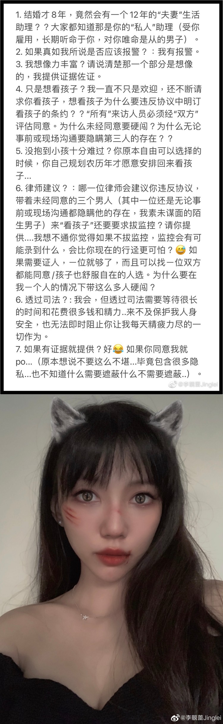 最后,针对王力宏方挑衅“如果李女士握有任何证据,请直接提告,让司法解决问题”,李靓蕾也隔空向王力宏喊话:“好,如果你同意我就po,“原本想说不要这么不堪,毕竟包含很多隐私...也不知道什么需要遮蔽什么不需要遮蔽”。