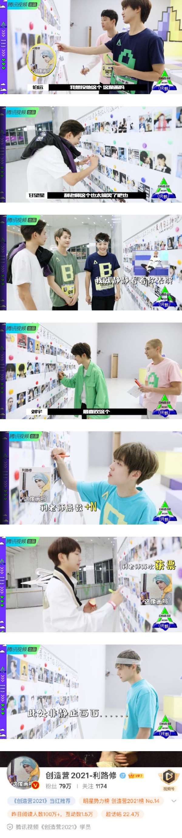 《创造营2021》举办了表情包投票比赛,将学员们在网上最火红得表情包全打印出来,让学员进行内部投票。没想到最终获得第一名的,竟是利路修的“这像画吗”表情包!