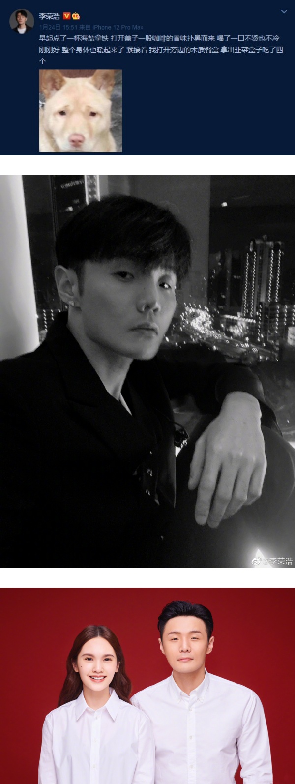 随后,李荣浩在微博上发文,自己在早上喝了被咖啡,再吃了4颗韭菜盒子;网友看了直呼,“吃韭菜盒子 好家伙 好好补补”、“哥,昨晚的细节就不用交代了”、“韭菜壮阳哥”、“哥,昨晚你是不是不眠之夜?”等。
