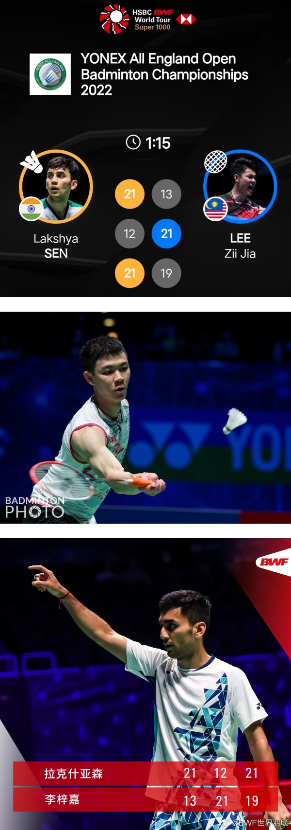 大马头号男单李梓嘉在本届全英赛中状态大勇,一路过关斩将寻求卫冕。不过他在19日晚上对阵印度00后新星Lakshya Sen 时以13-21 21-12 19-21 三局遗憾输球。对此,李梓嘉20日在社交平台上坦言,自己真的有点伤心。