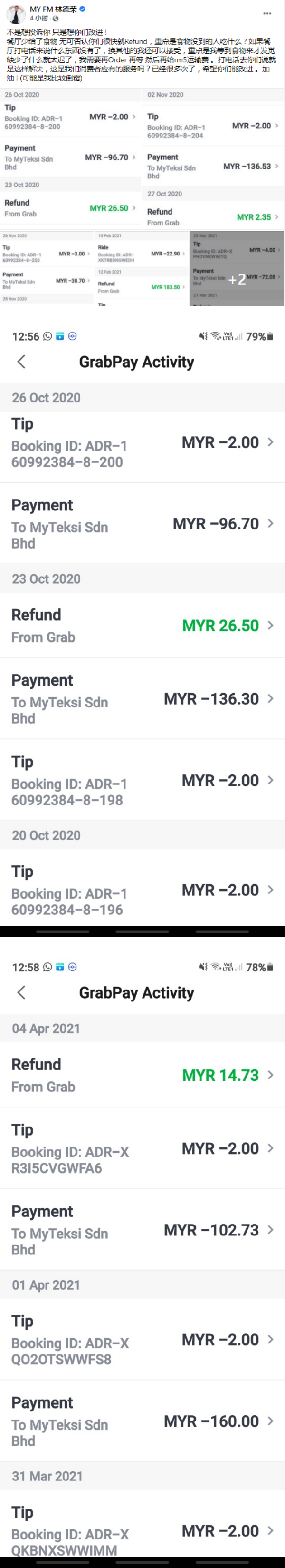 林德荣今天(4日)在FB发文,无奈写道:“不是想投诉你,只是想你们改进!”他透露,虽然餐厅少给食物后,Grab很快就会退款,但是“我等到食物来才发觉缺少了什么就太迟了,我需要再Order、再等,然后再给rm5运输费。”