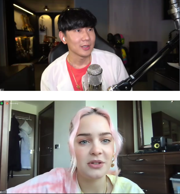 Anne Marie、林俊杰在今天(30日)举办的线上记者会上,宛如是“夸夸群”成员,不断称赞对方。