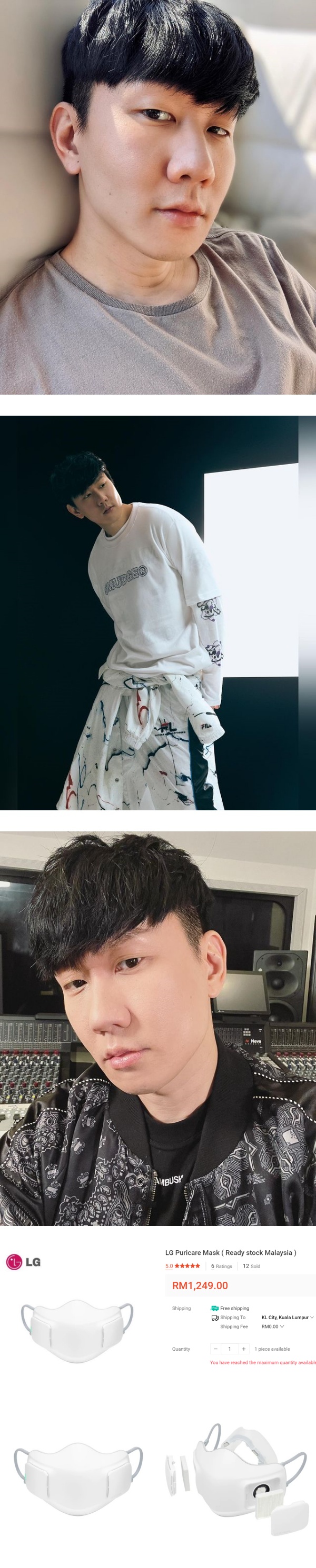 据悉,林俊杰脸上的这款口罩是LG的PuriCare 口罩型空气清净机(LG Puricare air purifier mask),小编上网查询后得知一个售价约RM1200,是绝对的高档货呀!
