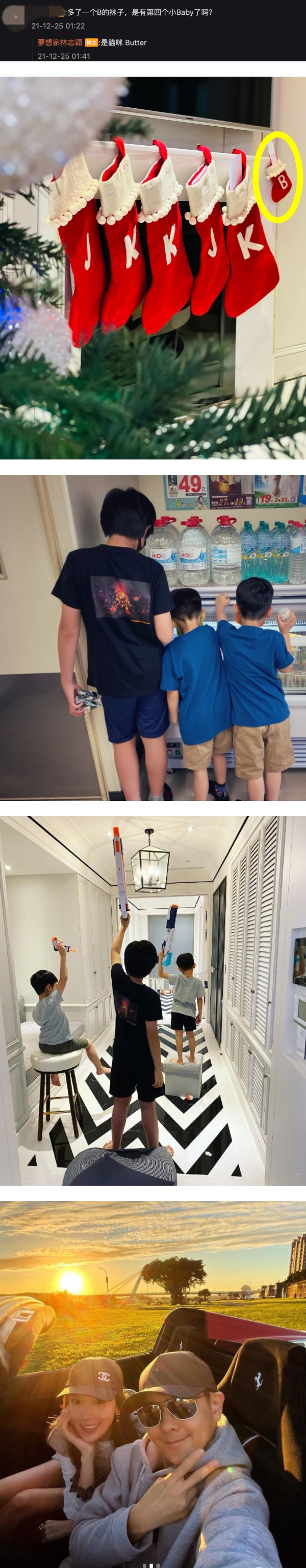 不过林志颖也亲自回应了:“其实是家中的猫咪取名叫做Butter,圣诞袜是为了爱猫而挂的。” 而林志颖不只晒出3个孩子写给“圣诞老公公”的信,还像个大哥哥一样扮演“圣诞老公公”,一家人逗趣又可爱的互动引起不少讨论。