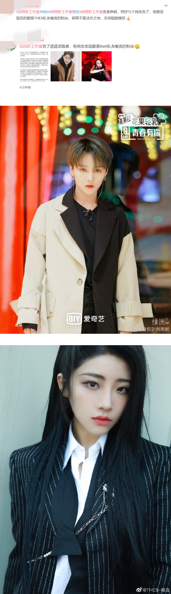 THE9成员刘雨昕工作室在3日发声明,透露向网友发送律师函。有人发现,3名网友中至少有一位是喻言的粉丝!