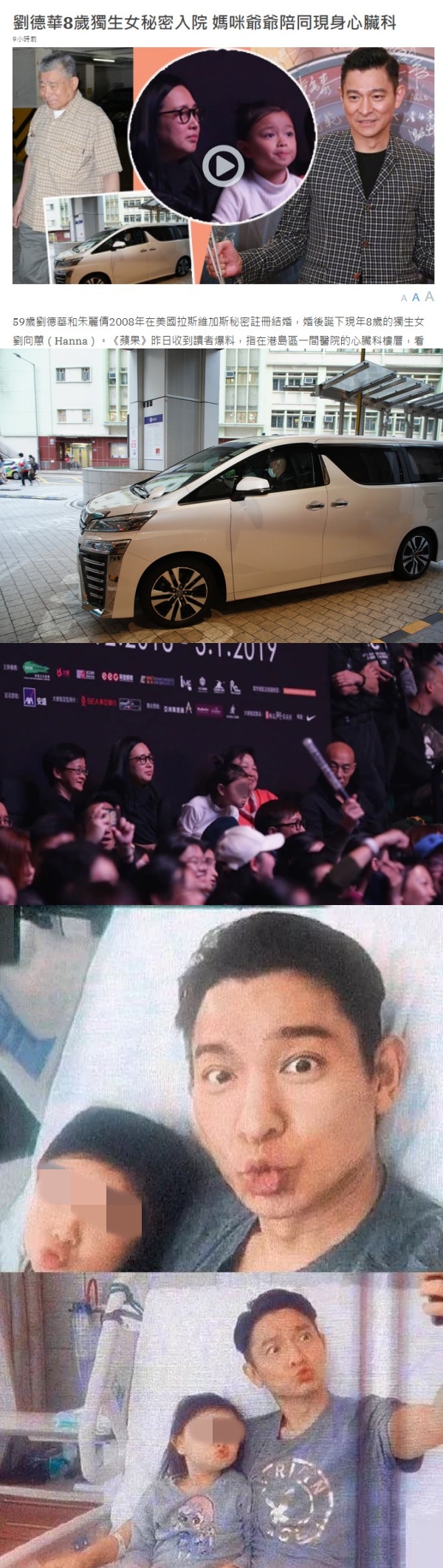 天王刘德华和太太朱丽倩育有一位8岁的女儿刘向蕙(Hanna),近日港媒报道指,Hanna在妈妈的陪同下秘密到医院心脏科做检查。