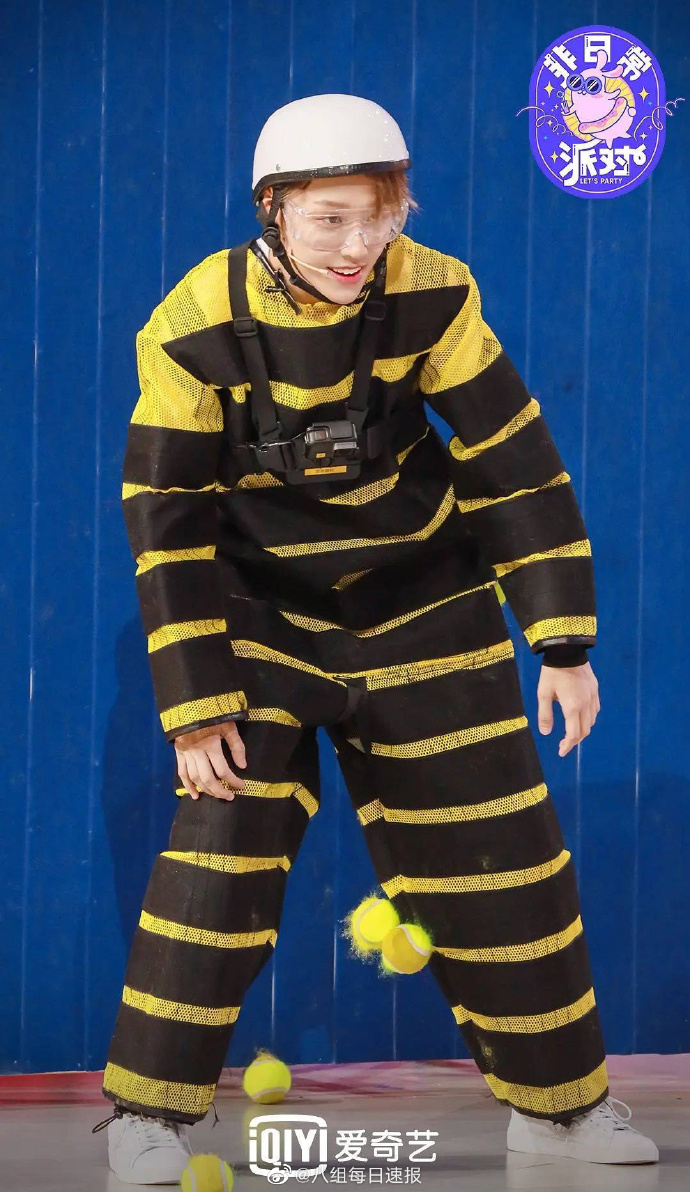 THE9在最新一期团综中换上“蜜蜂装”,并释出单人海报,其中刘雨昕穿上黑、黄条纹的蜜蜂装,戴上头盔及防护眼镜,造型非常可爱。