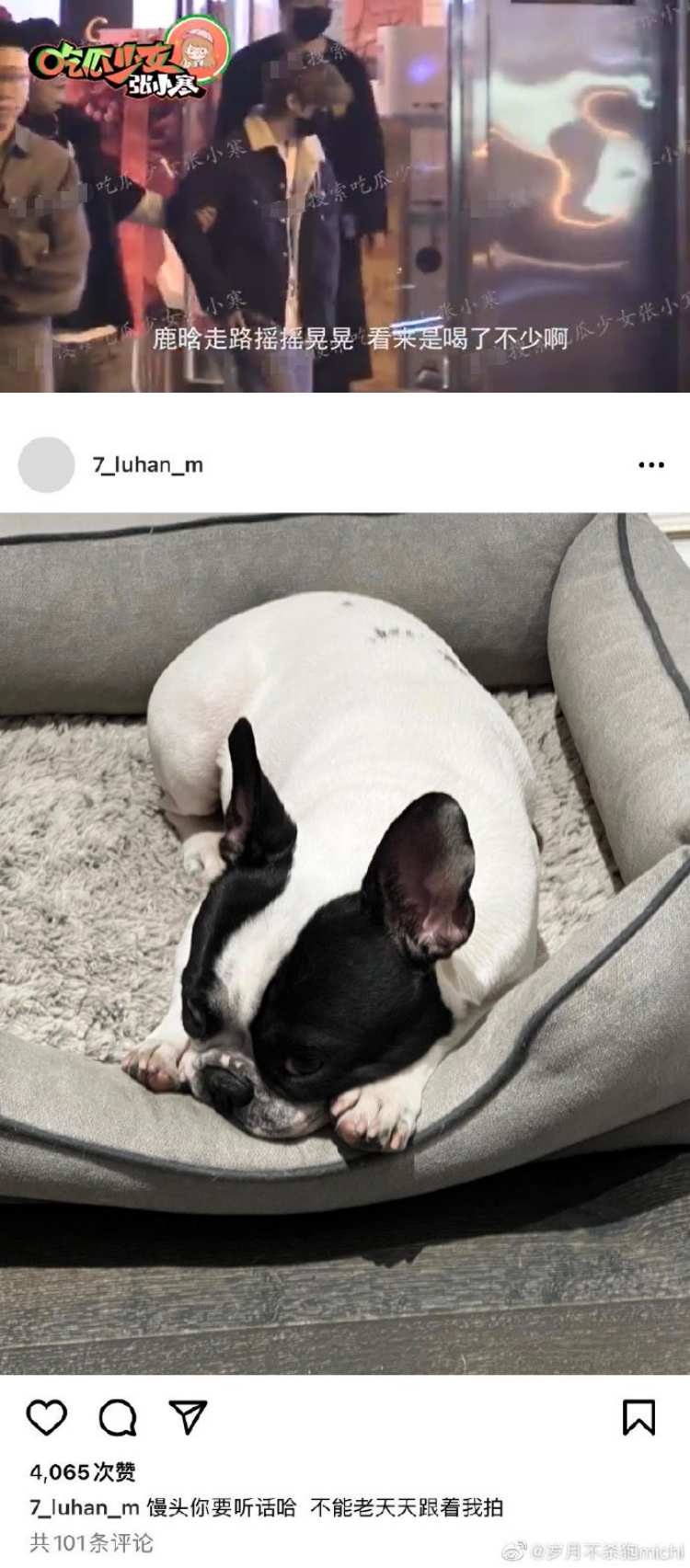 不满被狗仔跟拍的鹿晗13日晚就在IG放出一张爱犬的照片,配文写道:“馒头你要听话,不能老天天跟着我拍!”隔空喊话怼狗仔。