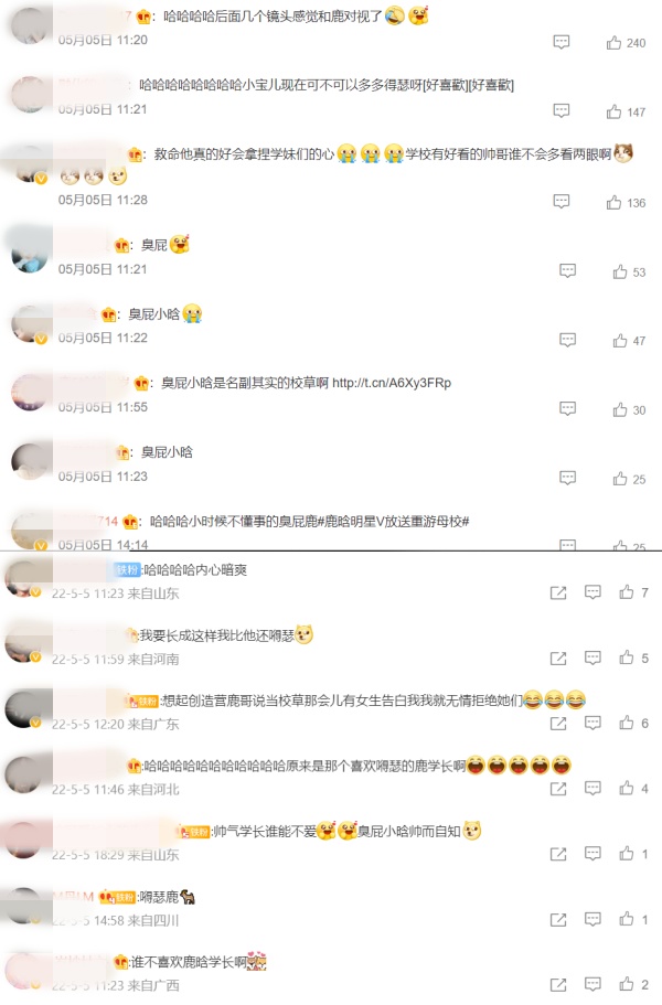粉丝看了鹿晗自揭因受学弟妹欢迎暗爽后留言,“救命他真的好会拿捏学妹们的心”、“臭屁”、“谁不喜欢鹿晗学长啊”、“嘚瑟鹿”等。