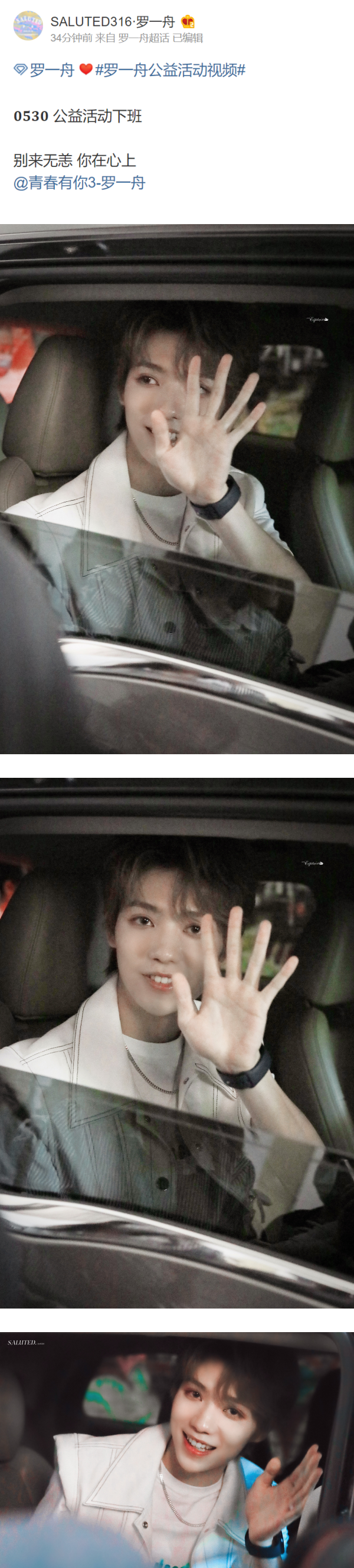 据站姐曝光的照片和资讯,罗一舟在30日确实出席了公益活动。他摇下车窗,笑容满面地对粉丝们打招呼,十分亲切。