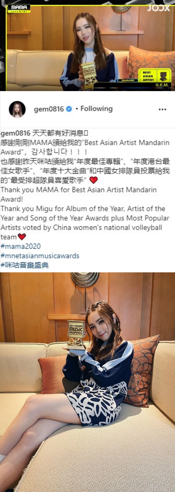 人气女团BLACKPINK虽没能出席颁奖礼,但也夺得了TOP10歌手、最佳跳舞女团和最佳女团3项大奖。值得一提的是,邓紫棋成功在颁奖礼上夺得“最佳亚洲艺人”奖,虽未能出席颁奖礼,但邓紫棋也在Instagram上晒图感谢。