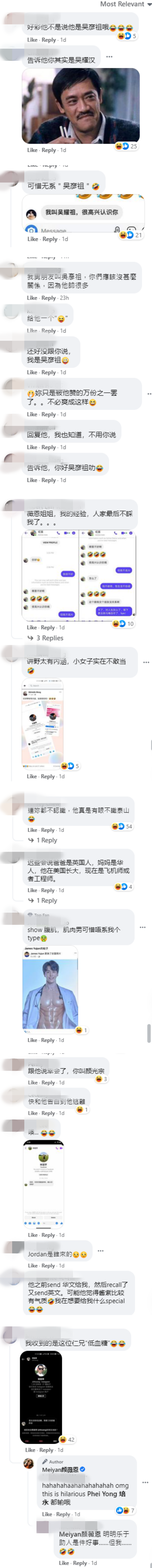 英文名同为“Jordan”的本地艺人盛天俊也来凑热闹,留言道:“我也叫Jordan;看你的头像好像蛮有气质的,可以交个朋友认识一下吗?”