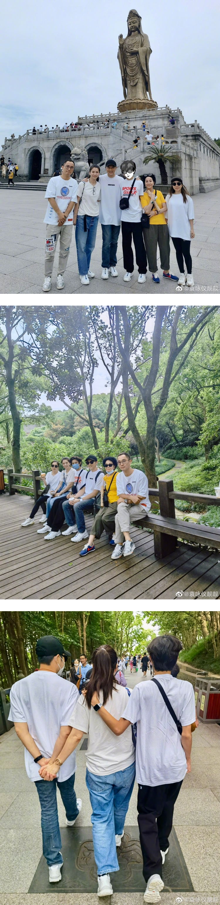 张智霖、袁咏仪每年都会到杭州的普陀山祈福,两人今年还带14岁儿子魔童同行。照片中,只见魔童身高已超过爸妈!