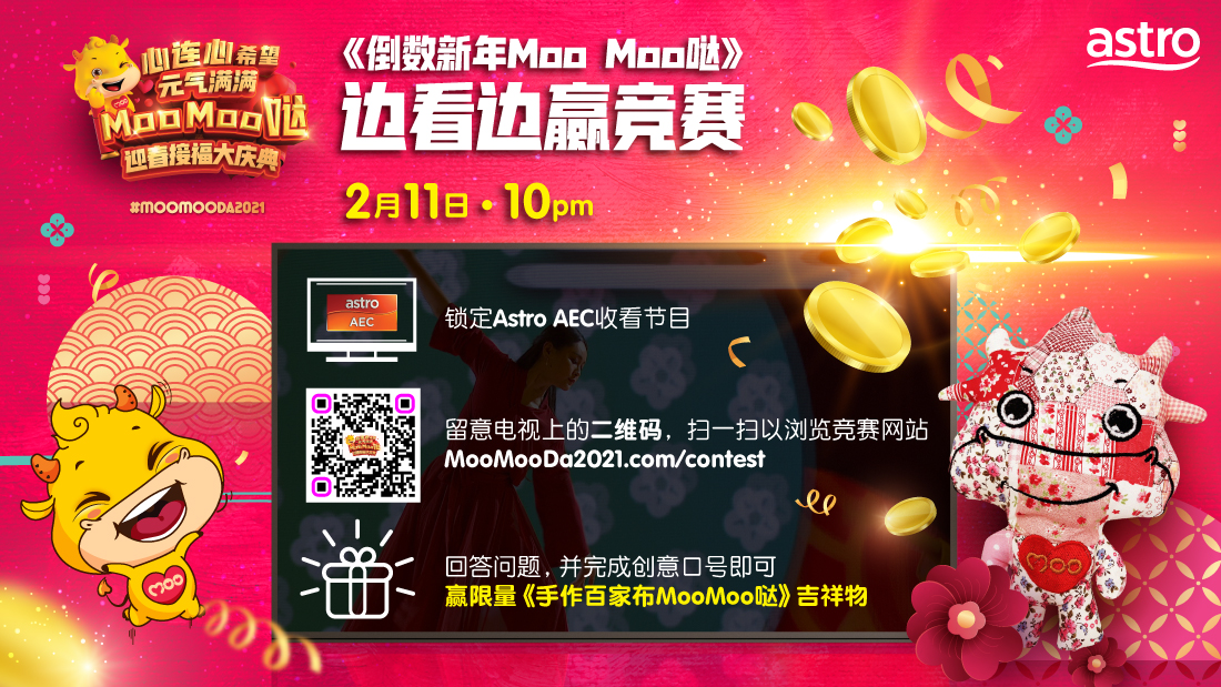 玩游戏很牛的朋友们,想不想赢个Astro独家限量版《手作百家布Moo Moo哒》吉祥物?那就别错过参加《倒数新年Moo Moo哒》边看边赢竞赛。