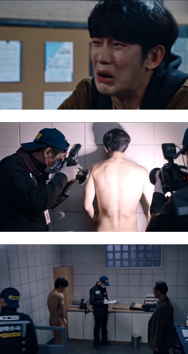 随后的剧情更出现反转,金秀贤酒醒后发现这名与他激战的女子身中多刀伏尸床上,让他一夜之间成为杀人案嫌疑人。在被警察审问、搜证的过程中,他再度全裸上阵,甚至在镜头前一丝不挂地露出屁股!