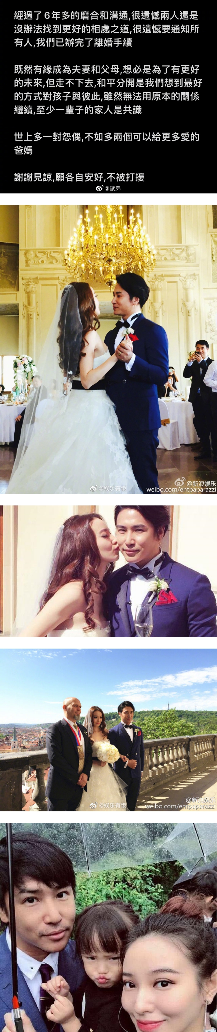 欧弟随后发声明,承认离婚:“经过6年多的磨合和沟通,很遗憾两人还是没办法找到更好的相处之道,很遗憾要通知所有人,我们已办完了离婚手续。”文中提到,和平分开是他们能想到的对孩子与彼此最好的方法,“世上多一对怨偶,不如多两个可以给更多爱的爸妈。”