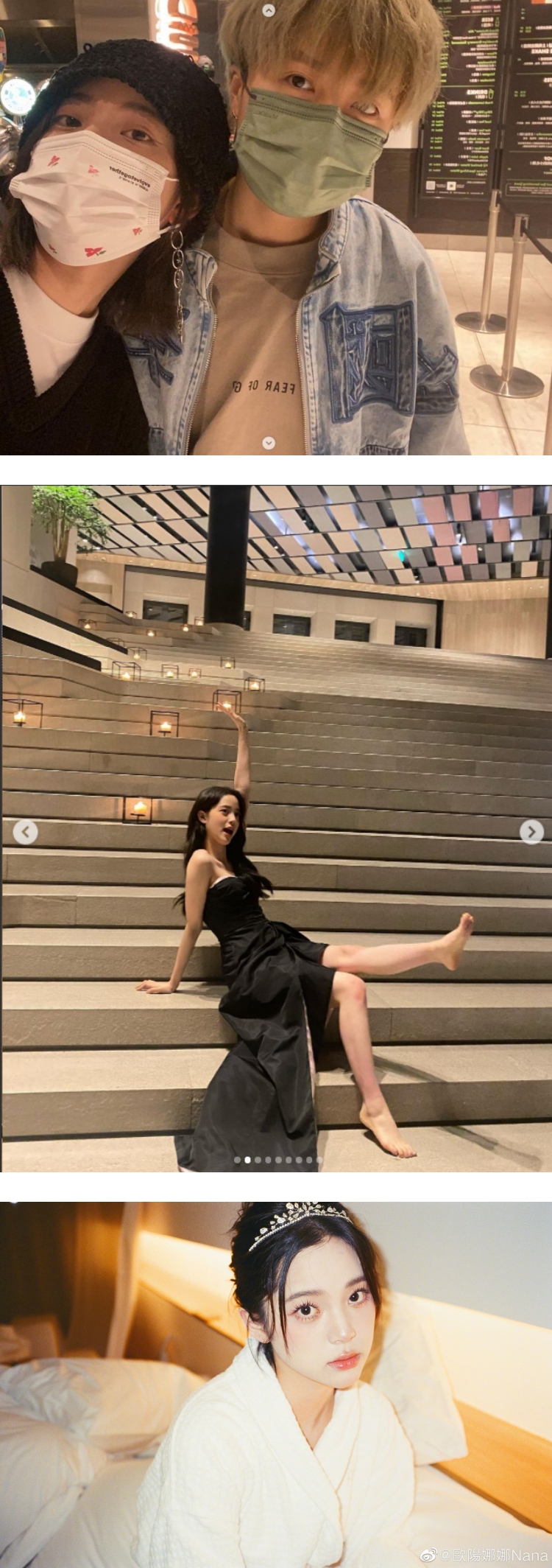 不仅如此,另一张照片中,欧阳娜娜戴着黑色毛帽,亲昵地靠在一位朋友身上,而对方留着一头浅色短发,加上帅气的牛仔外套穿搭,全身上下散发中性风,暧昧的合照让不少网友惊呼:“是恋爱了吗”、“跟那个男的太靠近了”、“该不会是官宣了吧?”