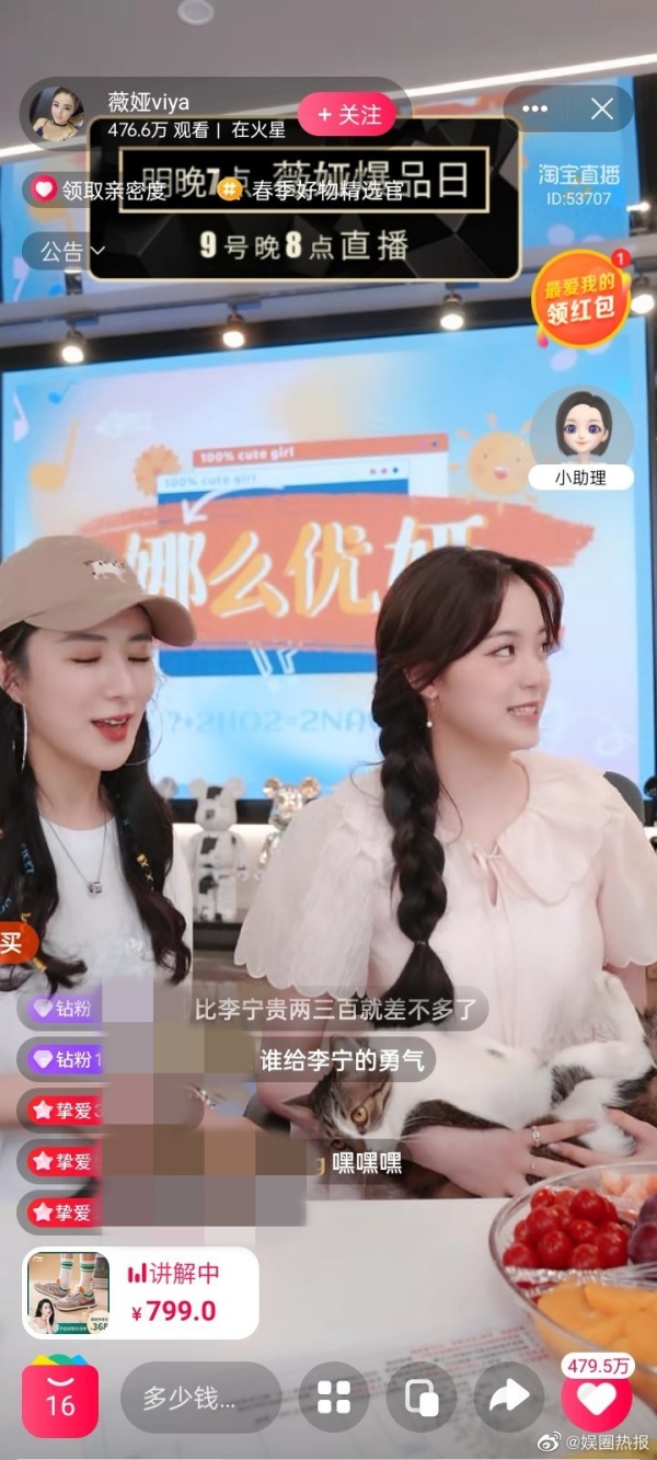 7日,欧阳娜娜现身直播节目,与“淘宝第一女主播”进行问答互动。她在直播上的穿着洋装并且绑着公主辫,整体气质清新脱俗。网友提问时,她被问到:“如果未来有男朋友会选哪一种类型的?”,她透露其上爸爸并没有给出太多限制,只要求对方善良和孝顺,而且自己现在并没有任何特定的标准,只希望能够遇上对的人,感觉对就好了。